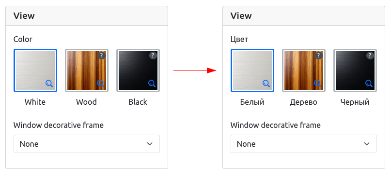 All default values of the plugin settings and the demo-preset are made in English. However, all these strings and labels can be changed right from the admin part of the plugin.